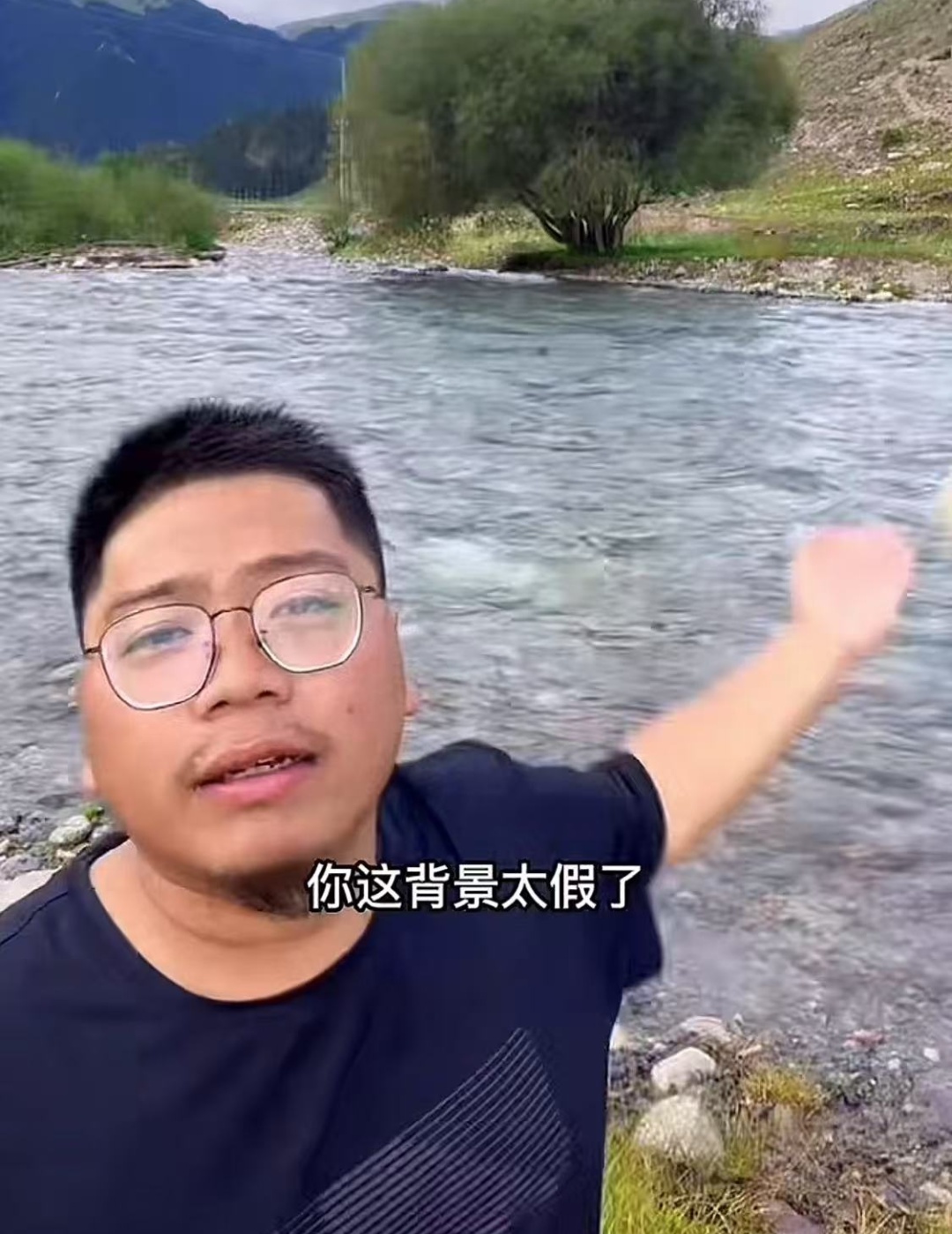 3年前的夏天,在新疆鞏乃斯河邊,一名主播在一場直播中被網友質疑其身后油畫般的背景太假,是“后期處理上去的”。為了自證,他將一只桶丟進身后的河里,反問網友道:“假嗎?”